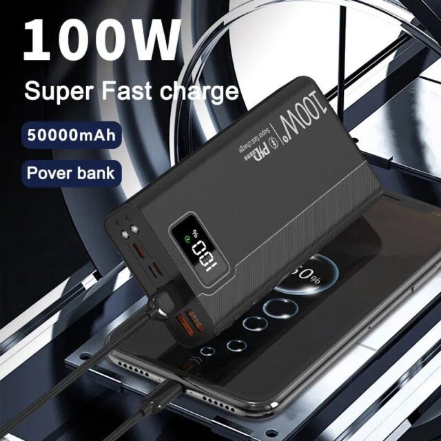100W Super Fast Charging 50000mAh Power Bank with 4 USB & Wireless Charging