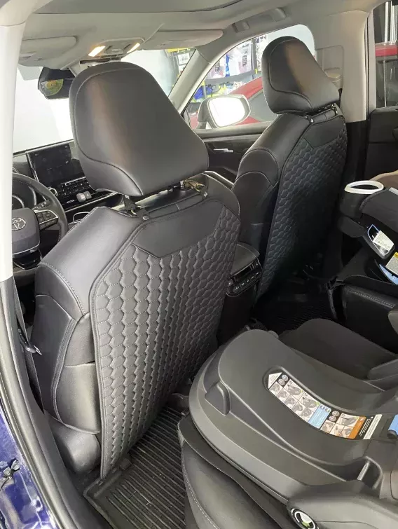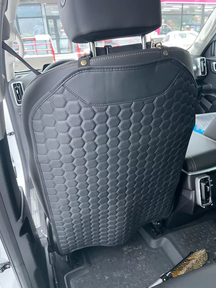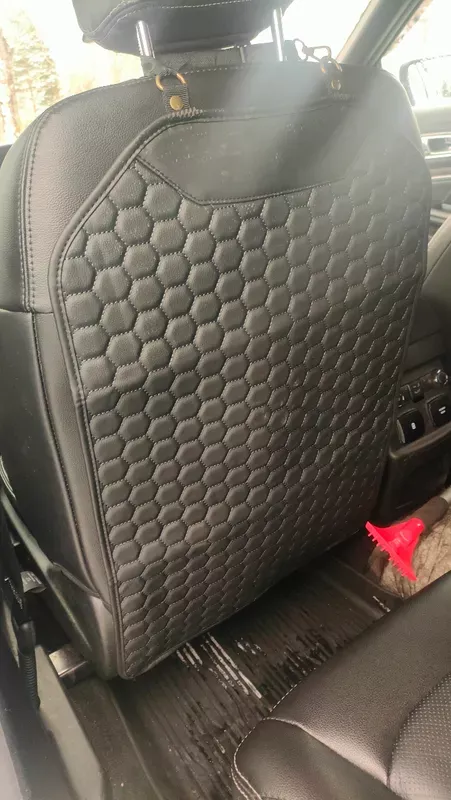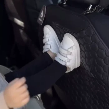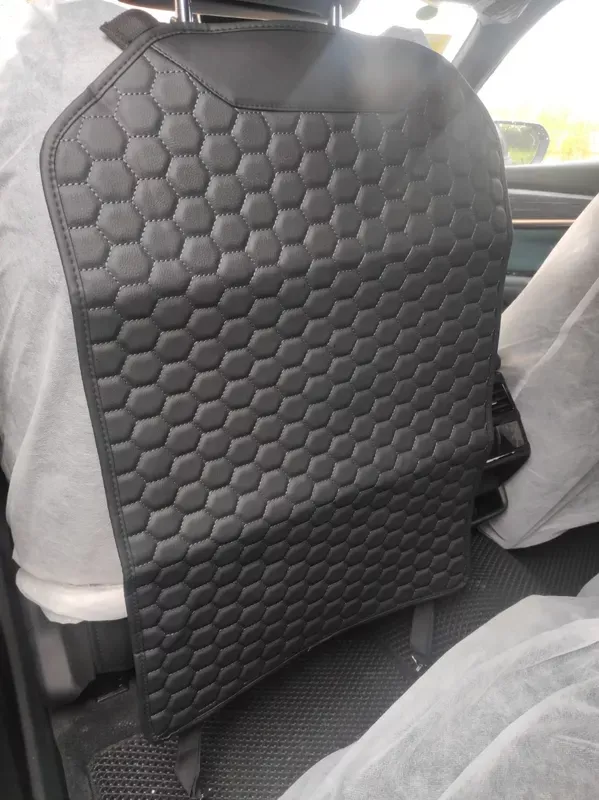 Featuring a sophisticated solid black color with a hexagonal pattern, our seat back protector fits seamlessly into any car interior. It not only guards your seat upholstery against dirt and shoe marks but also adds a touch of style.