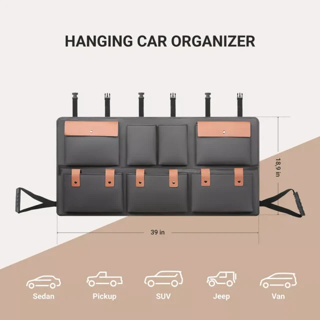 This compact and flat SUV trunk organizer is designed to maximize storage efficiency without taking up much space. Its sleek design allows it to fit seamlessly into the trunk, ensuring that you have ample room for other items. When you’re not using it, the organizer can be quickly detached from the headrests and effortlessly folded for convenient storage, keeping your trunk clutter-free.