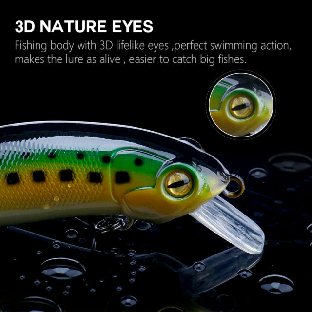 The Fast Sinking Minnow Fishing Lure is designed to help you land trophy fish with ease. At 2.4 inches long and 0.35 oz, this hard artificial crankbait offers lifelike swimming action that mimics real baitfish. Its 3D eyes, realistic colors, and tight vibration at fast retrieves make it irresistible to predators. Whether you are targeting bass, pike, walleye, or trout, this lure is built to perform in both freshwater and saltwater conditions.