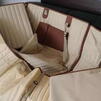 Our car hammock for dogs is designed to be foldable, collapsing into a flat, compact shape with convenient built-in handles for easy transport. Once folded, it can be neatly stored in your car’s trunk, taking up minimal space when not in use. Its lightweight and portable design also make it simple to carry with you while traveling, ensuring your dog’s comfort wherever you go without the hassle of bulky equipment.